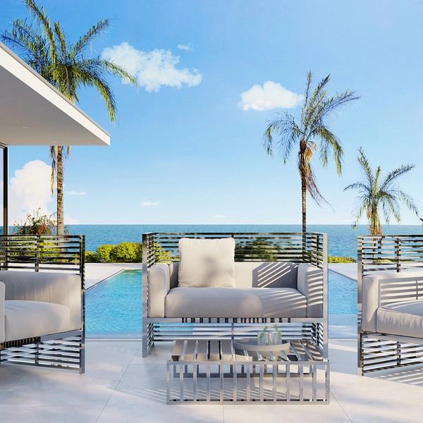 야외에 대한 열정, 빛과 그림자의 조화, 하늘과 바다를 비추는 스틸디벨루카 아웃도어 퍼니쳐.