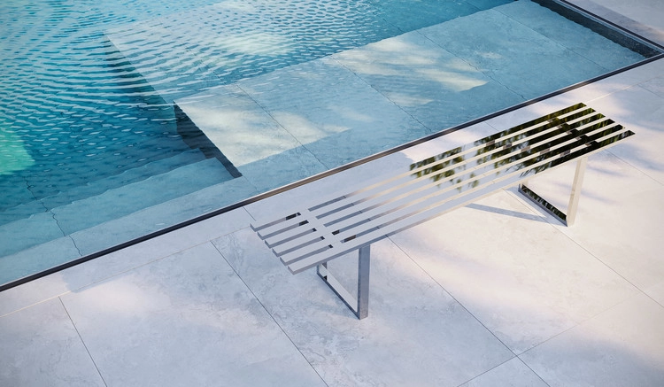 Iconic benches are used in a variety of ways, both outdoors and indoors, and several Miller stainless steel frames add a sophisticated and modern look.
